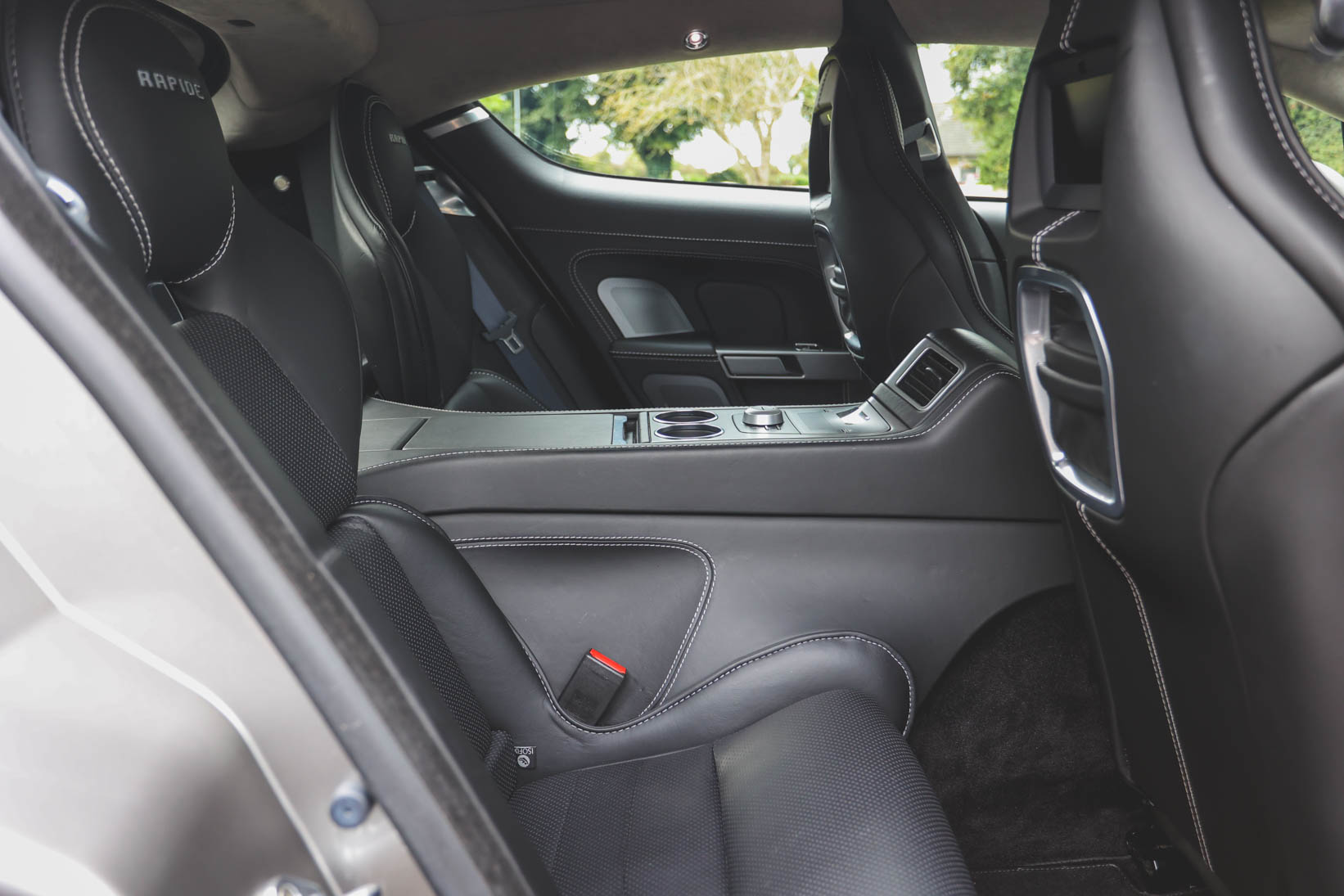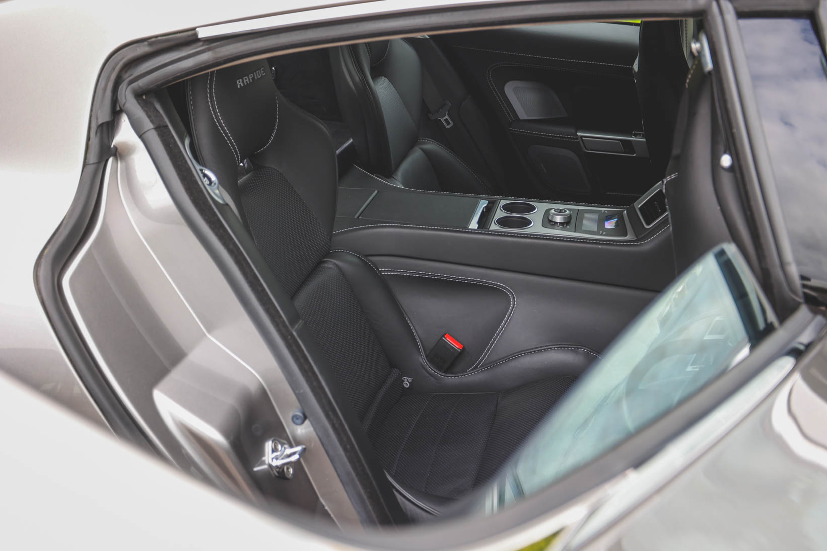The front of the cockpit is very typical of Aston Martin and boasts all of the usual tech and refinements you would expect such as Bang & Olufsen sound system and white stitched leather, while the split rear seating offers individual heated and cooled seats with zoned A/C controls. The practicality continues with a wide opening rear hatch and deep boot space.