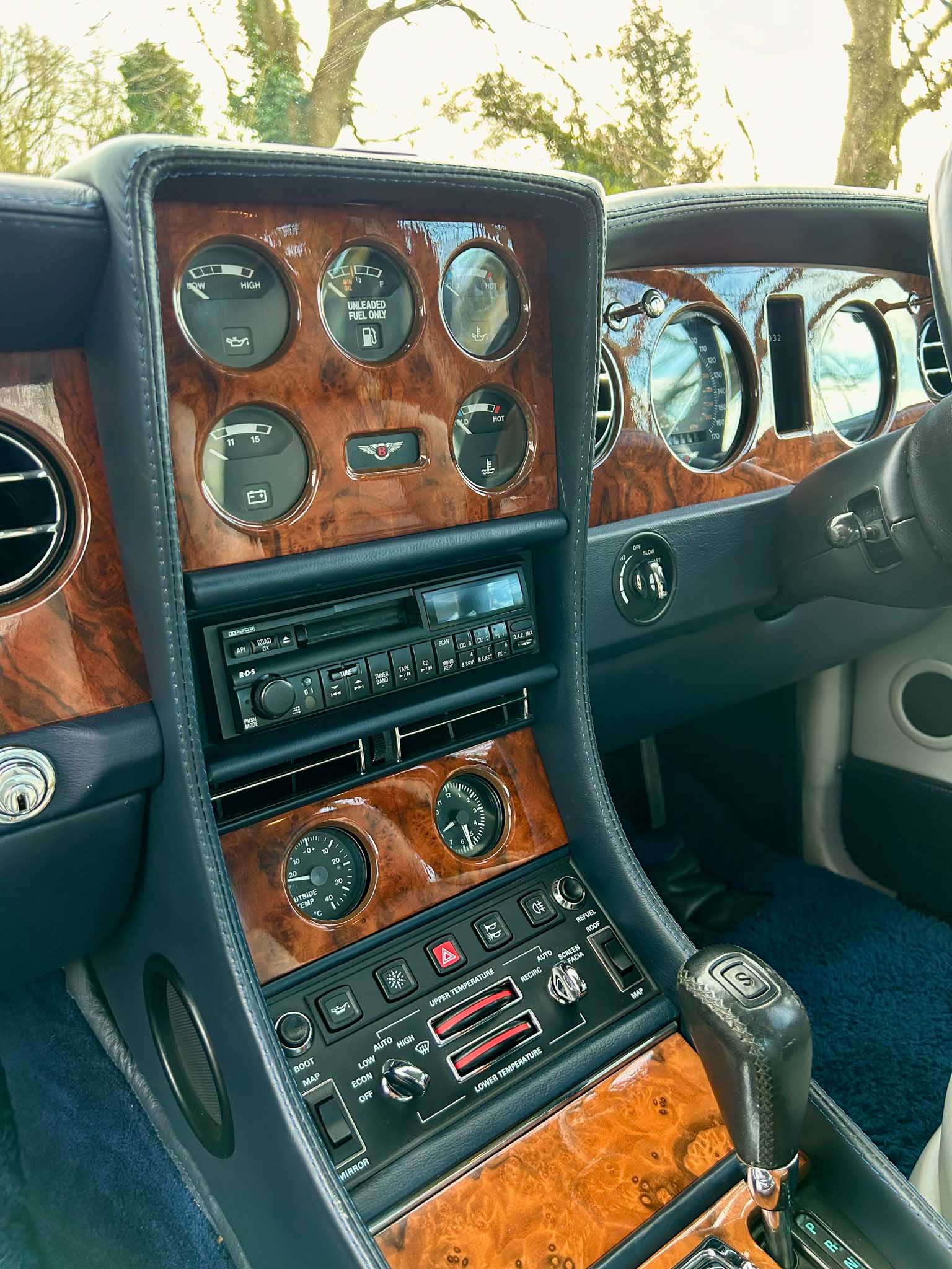The “R” stands for Roadholding, and Bentley meant it. Beneath the long bonnet sits the legendary 6.75-litre turbocharged V8, producing 360bhp and a colossal 500lb-ft of torque, delivered to the rear wheels through a four-speed automatic transmission. With Cosworth-derived cylinder heads and a Garrett turbocharger of heroic proportions, this 2.5-tonne grand tourer will surge to 60mph in around six seconds and on to a top speed of 152mph — extraordinary figures for something this luxurious.
