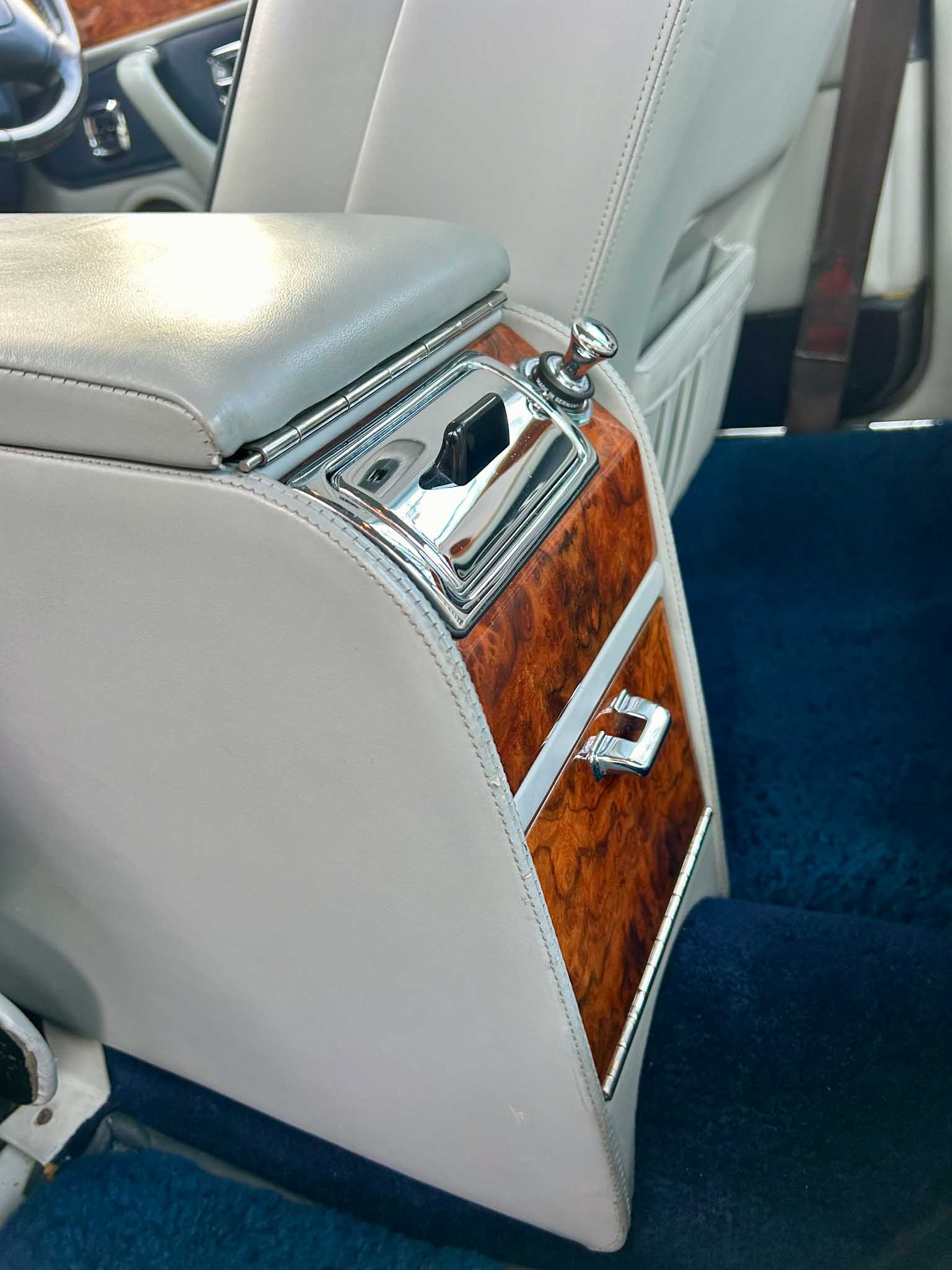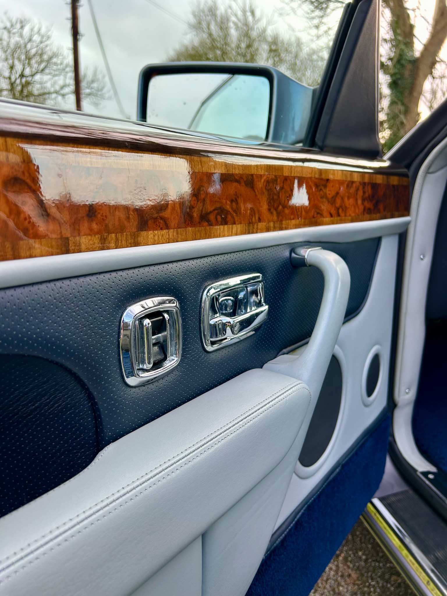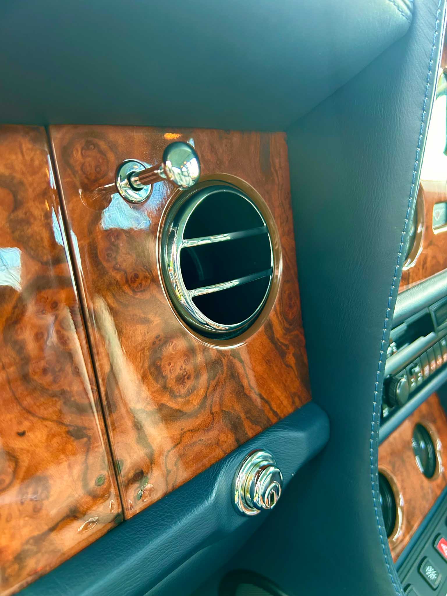 Finished in Diamond Blue Silver Metallic, it is paired with a beautifully rare Surf Blue and Light Grey two-tone Connolly hide interior, complemented by deep-pile blue carpets and burr walnut veneers. The combination perfectly suits the Continental R’s blend of elegance, muscle, and occasion.