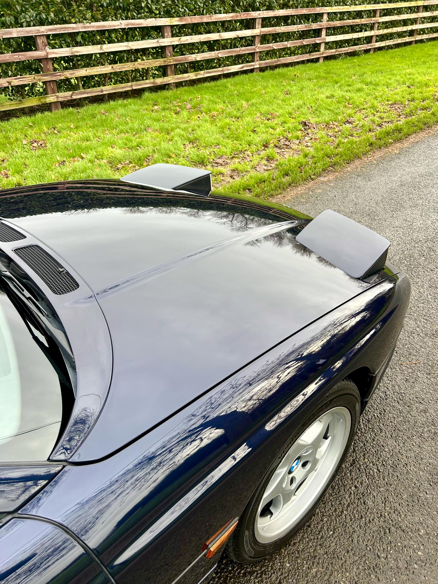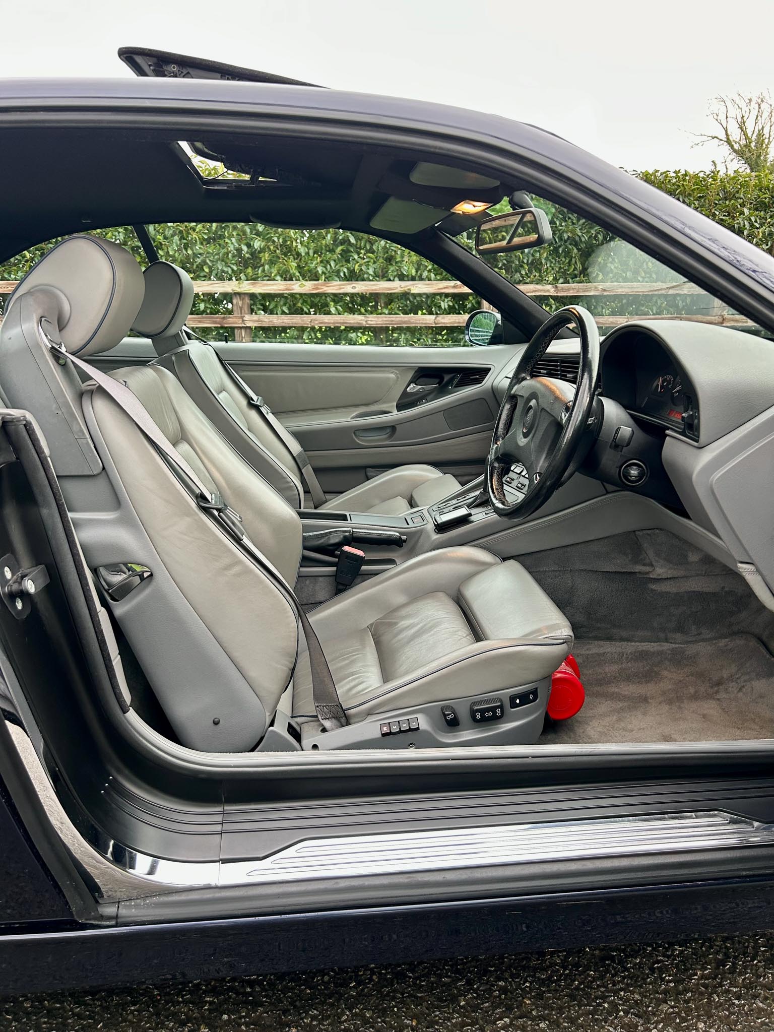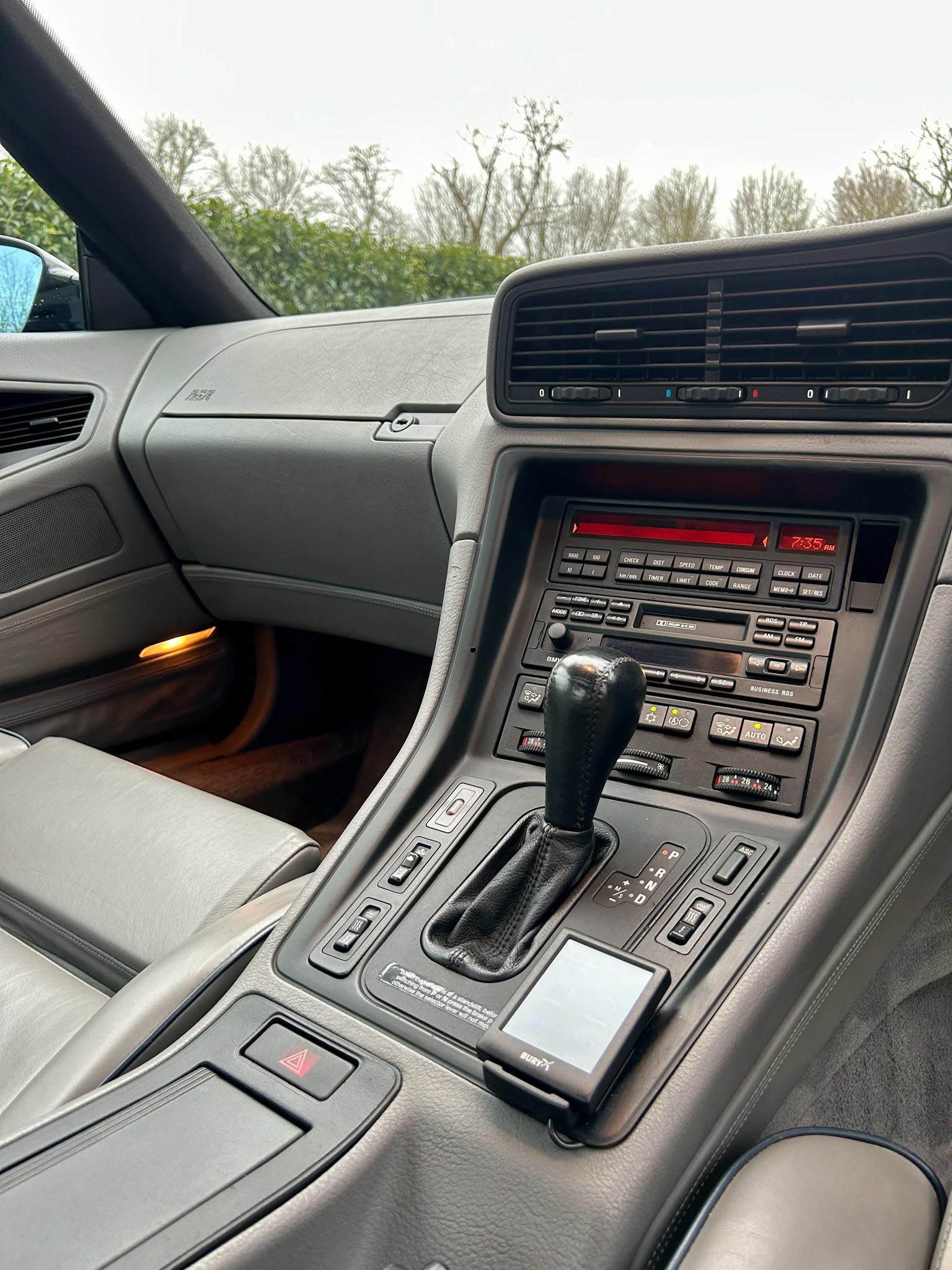 The Pacific Blue paintwork is excellent and the rare original Throwing Star alloys are perfect. Inside, the grey leather electric memory seats show little to no wear and everything works exactly as it should. A head cloth had been fitted in recent years which is a common weak point for this generation of 8 series. A very well specced model containing upgraded original head unit, heated seats, rear blind and sunroof.