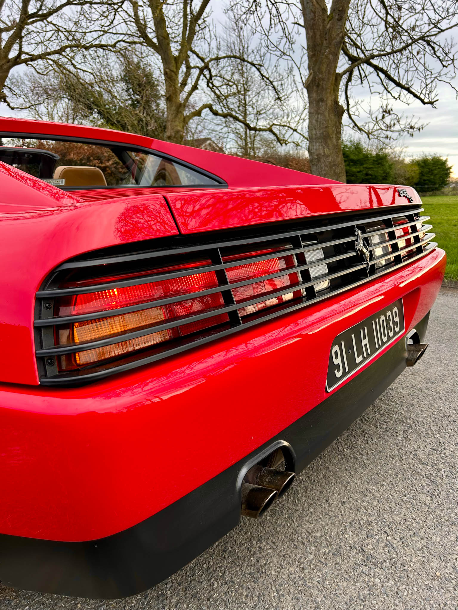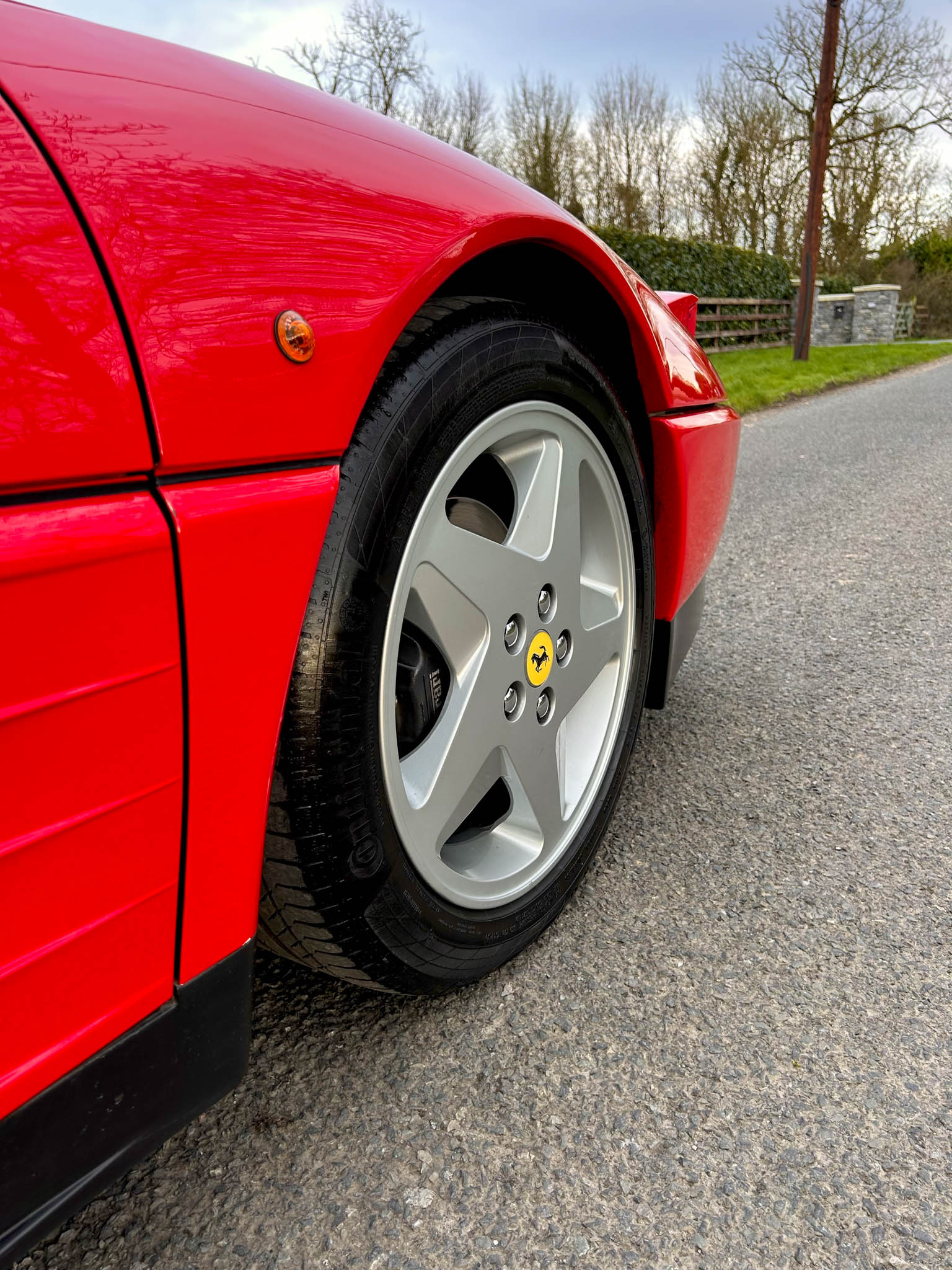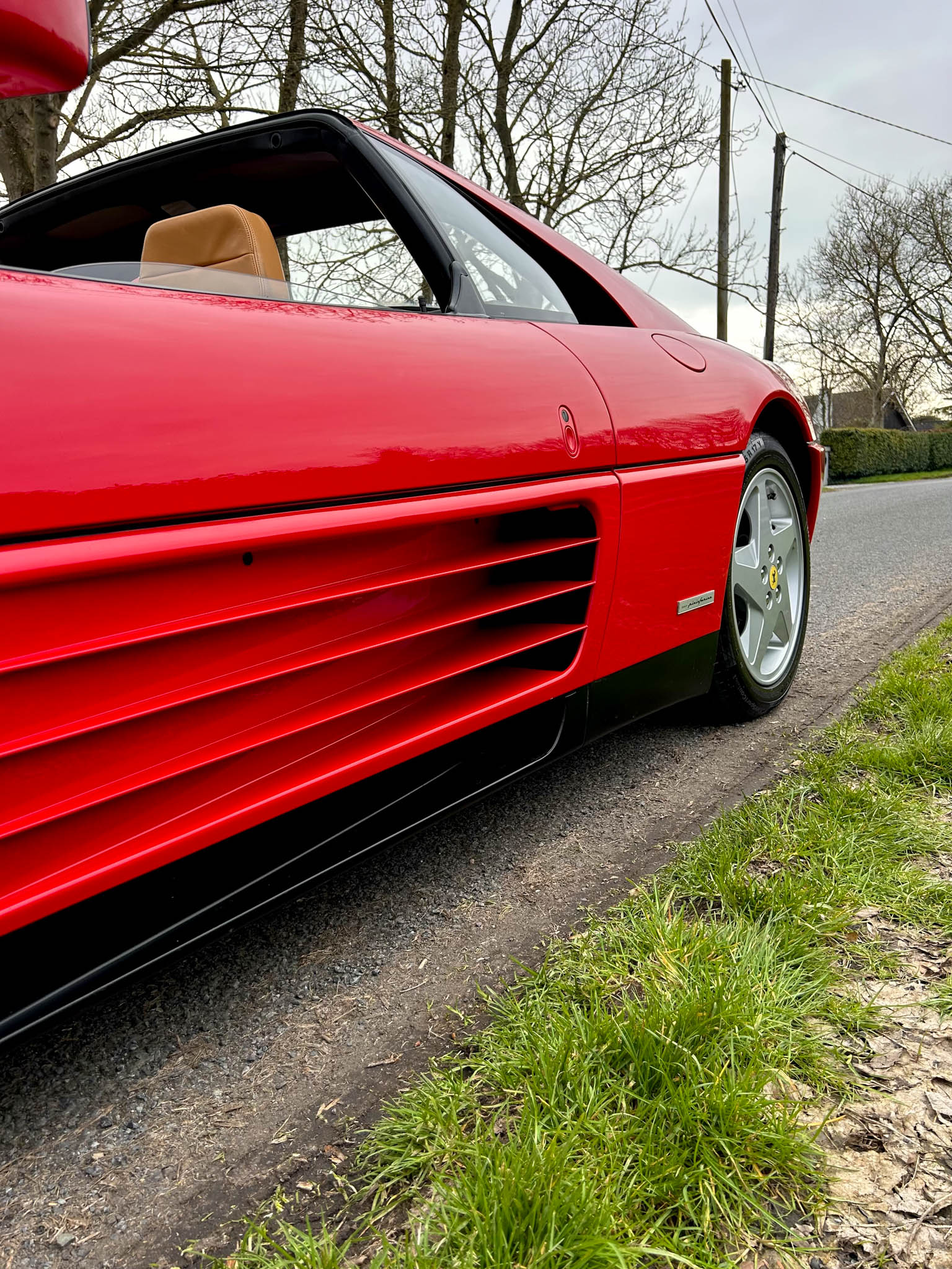 Finished in the intimate and utterly classic combination of Rosso Corsa with a tobacco leather interior, this early 348 TS looks exactly as a proper Ferrari from the early 1990s should. Being an early example, it retains the beautiful factory detail of the lower panels painted in black, a feature that really sets these first cars apart.