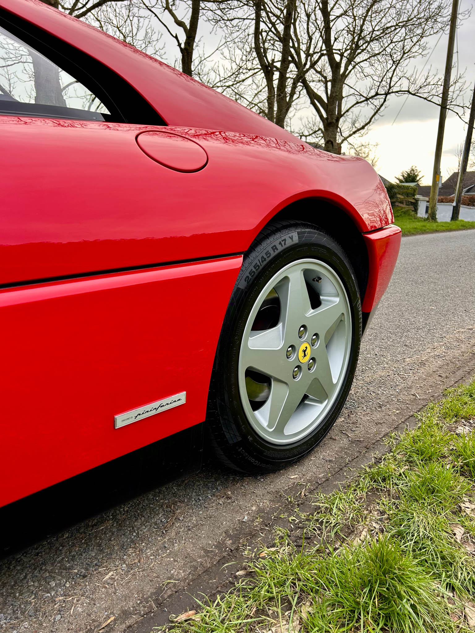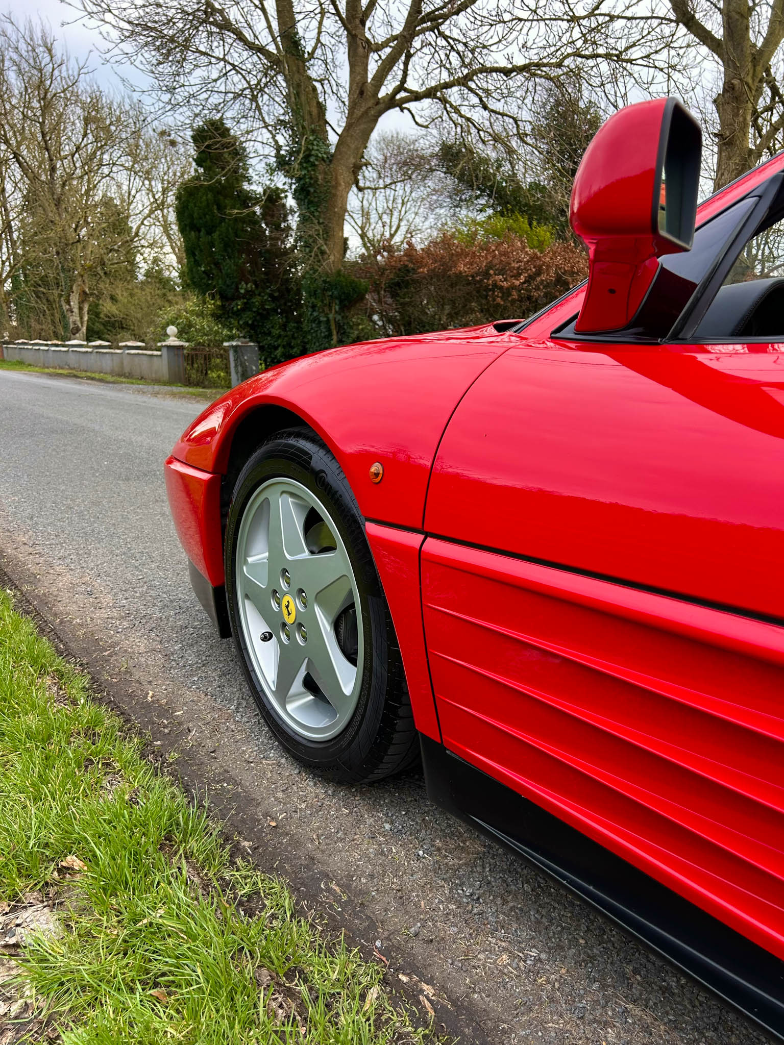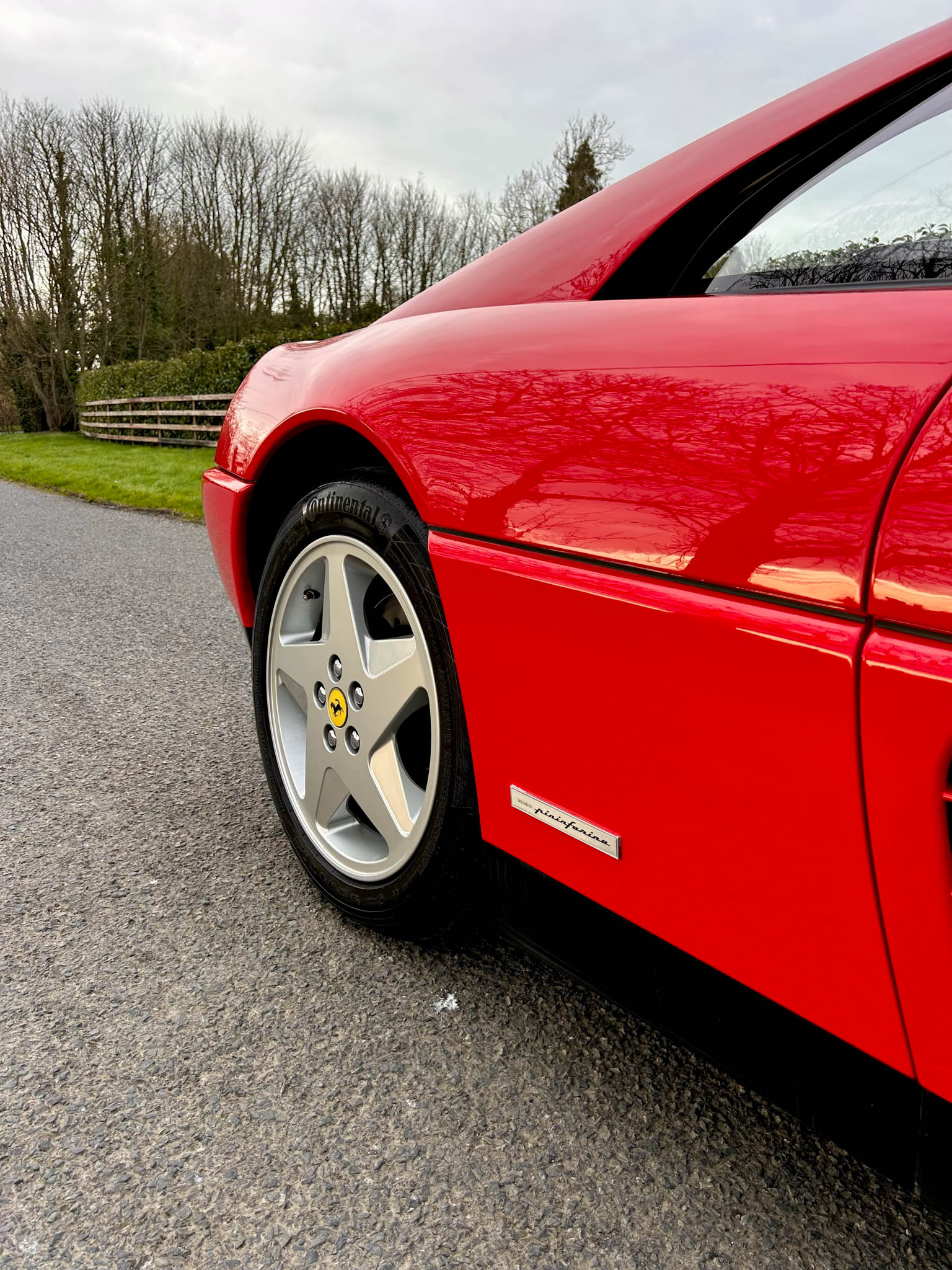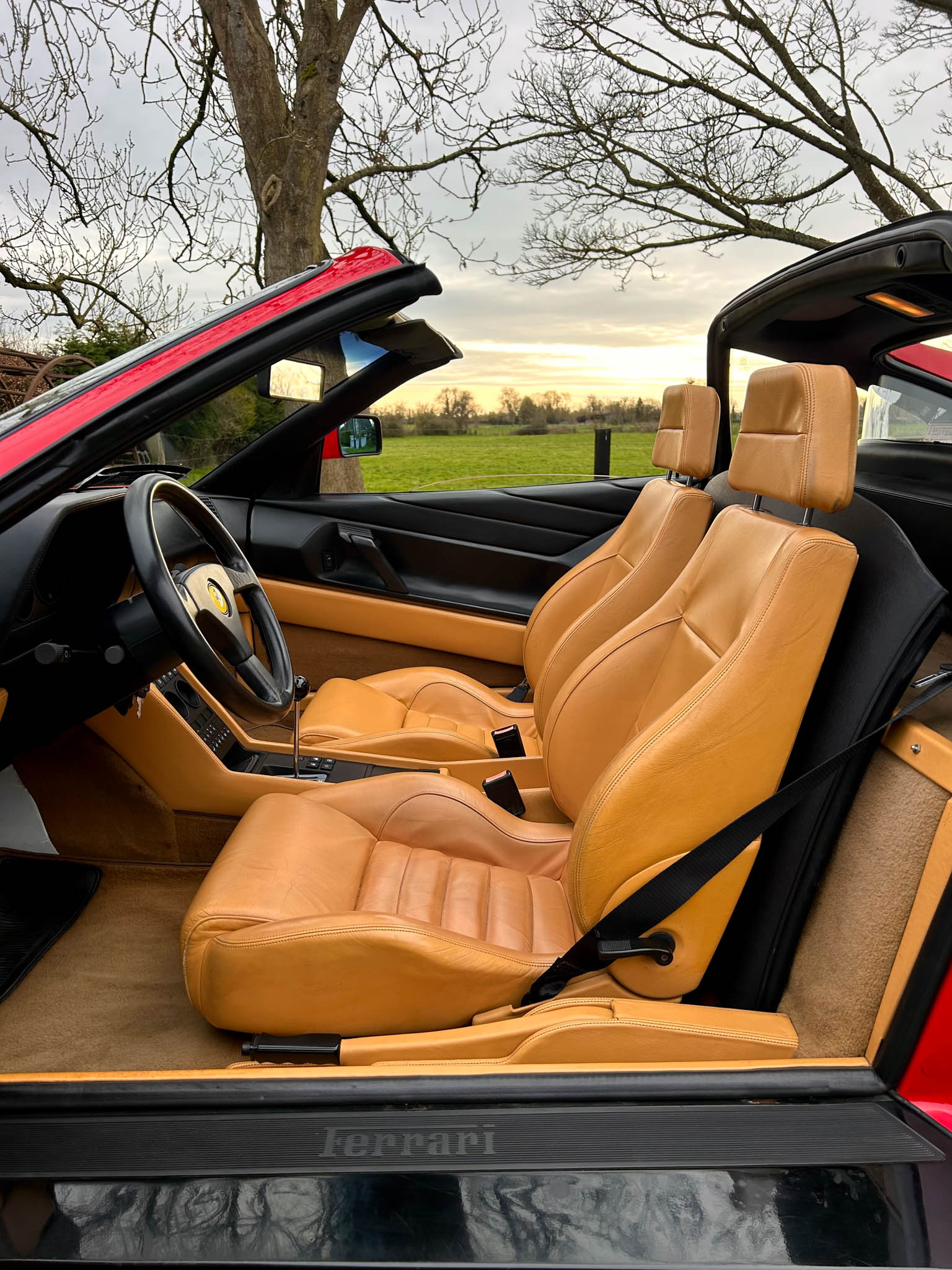 Finished in the intimate and utterly classic combination of Rosso Corsa with a tobacco leather interior, this early 348 TS looks exactly as a proper Ferrari from the early 1990s should. Being an early example, it retains the beautiful factory detail of the lower panels painted in black, a feature that really sets these first cars apart.