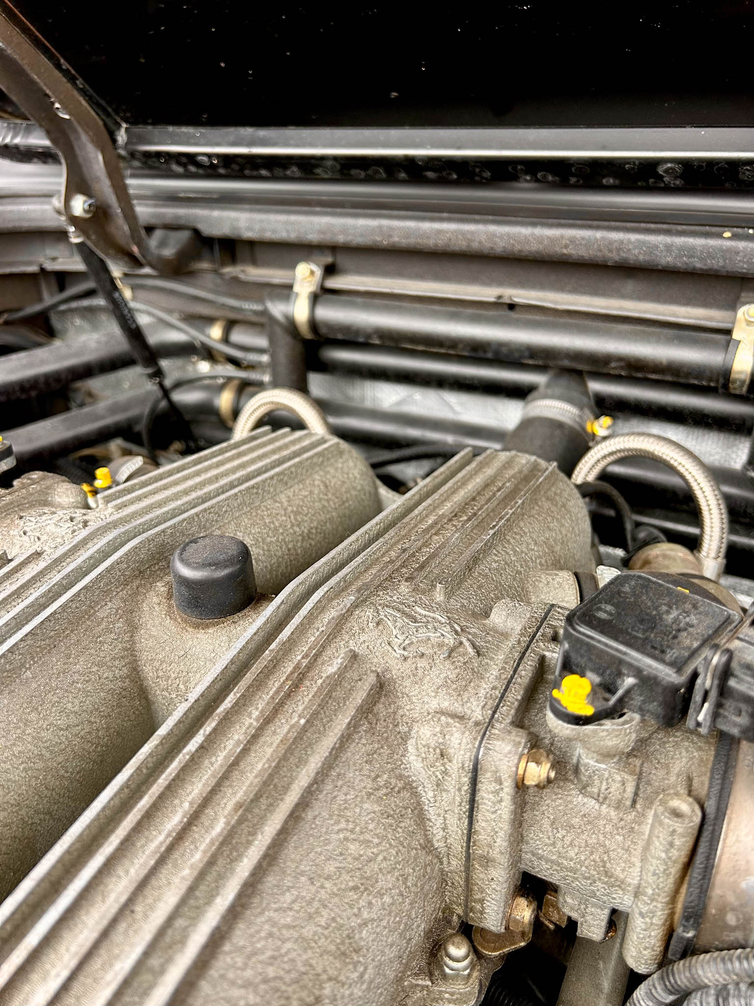 The steering is quite honestly one of the best we have ever experienced. It communicates everything. If I drove over a snail, I could probably tell you what it ate for breakfast. The targa roof lifts out beautifully, the air conditioning works perfectly, and all the roof seals are like new — small details that make a big difference when actually using the car.
