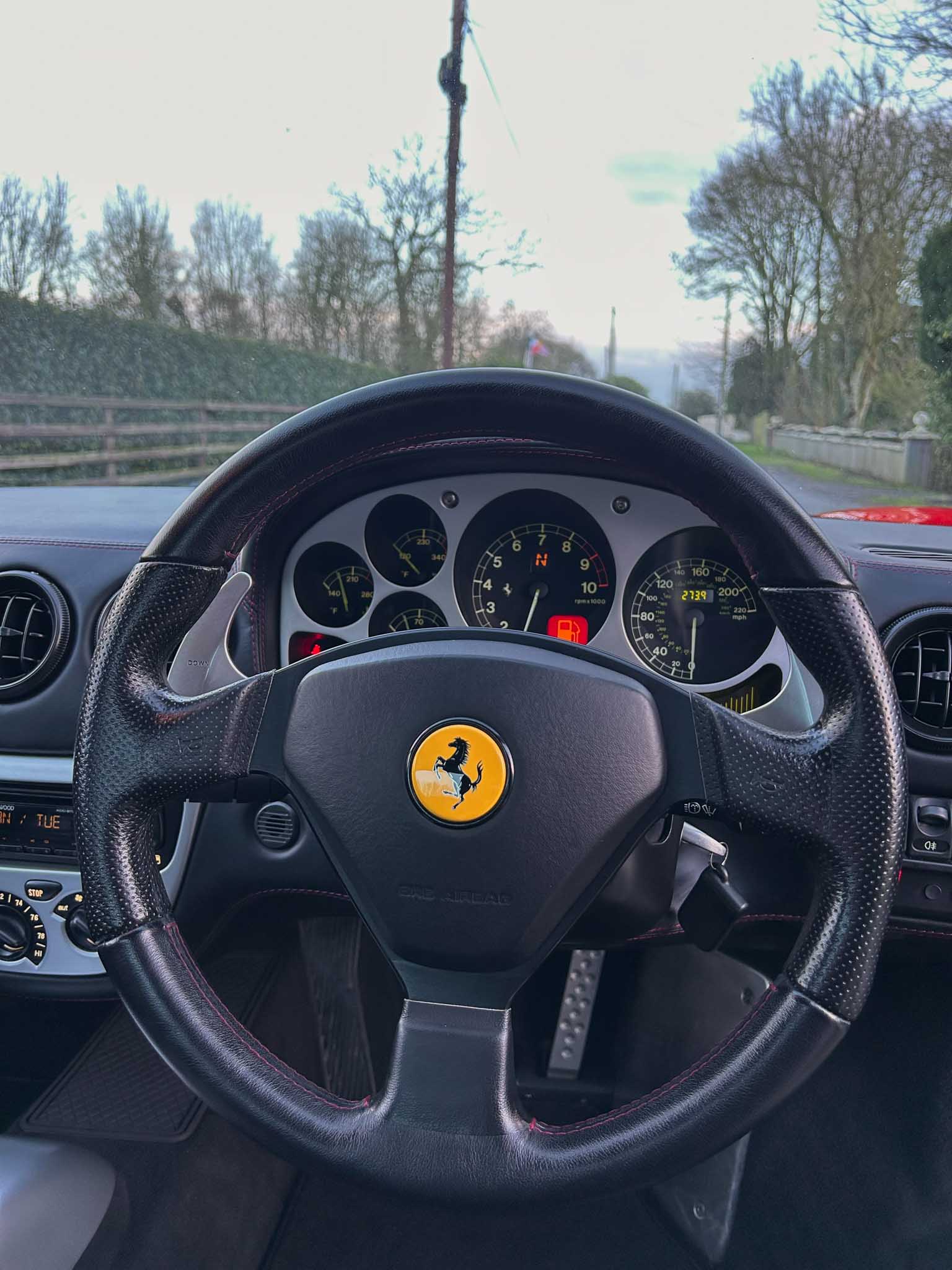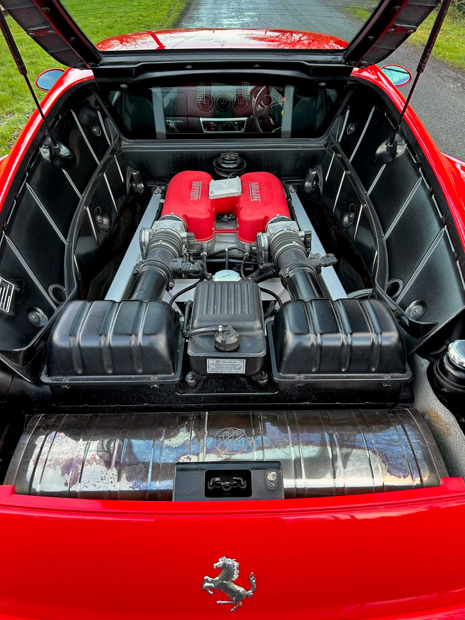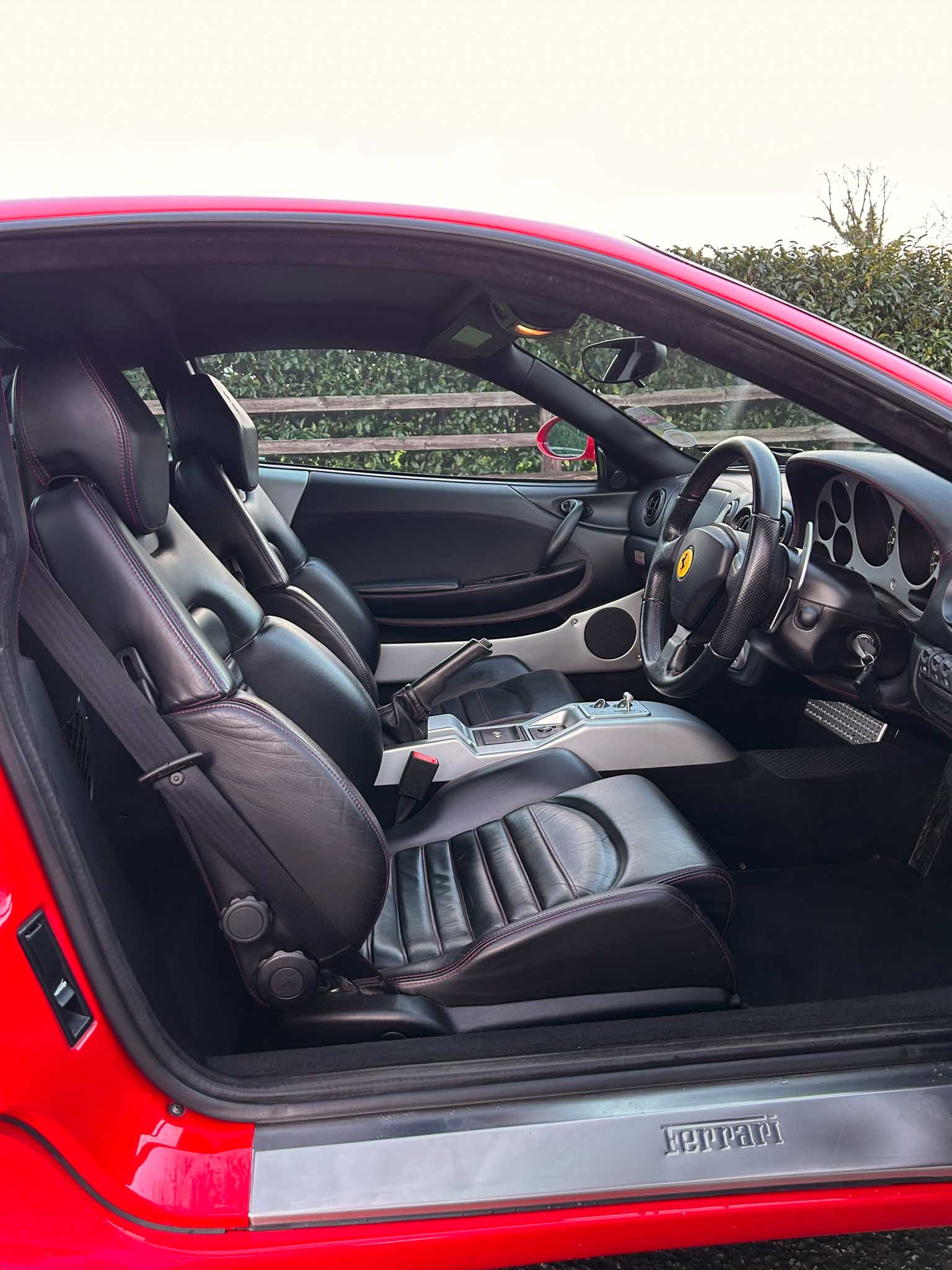 The car has been exclusively serviced by Ferrari main dealers from new, and its condition reflects this meticulous care. It presents beautifully in Rosso Corsa, paired with a black leather interior with red stitching, creating a timeless and unmistakably Ferrari specification.