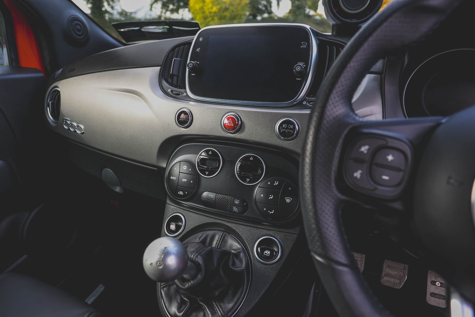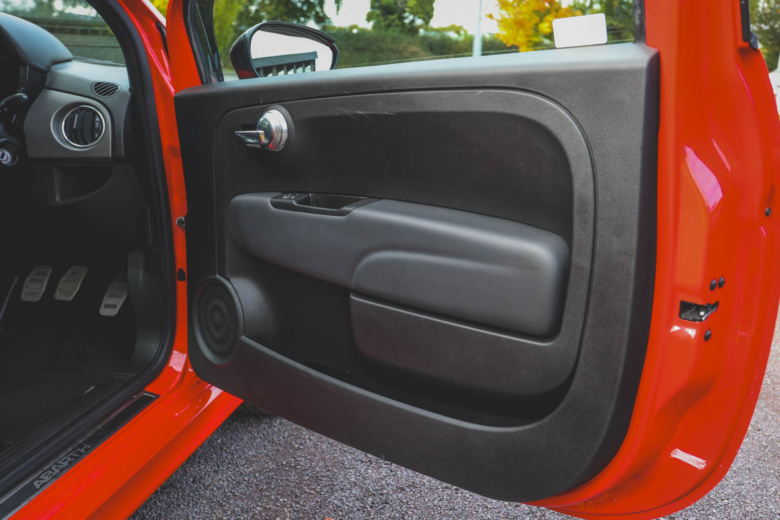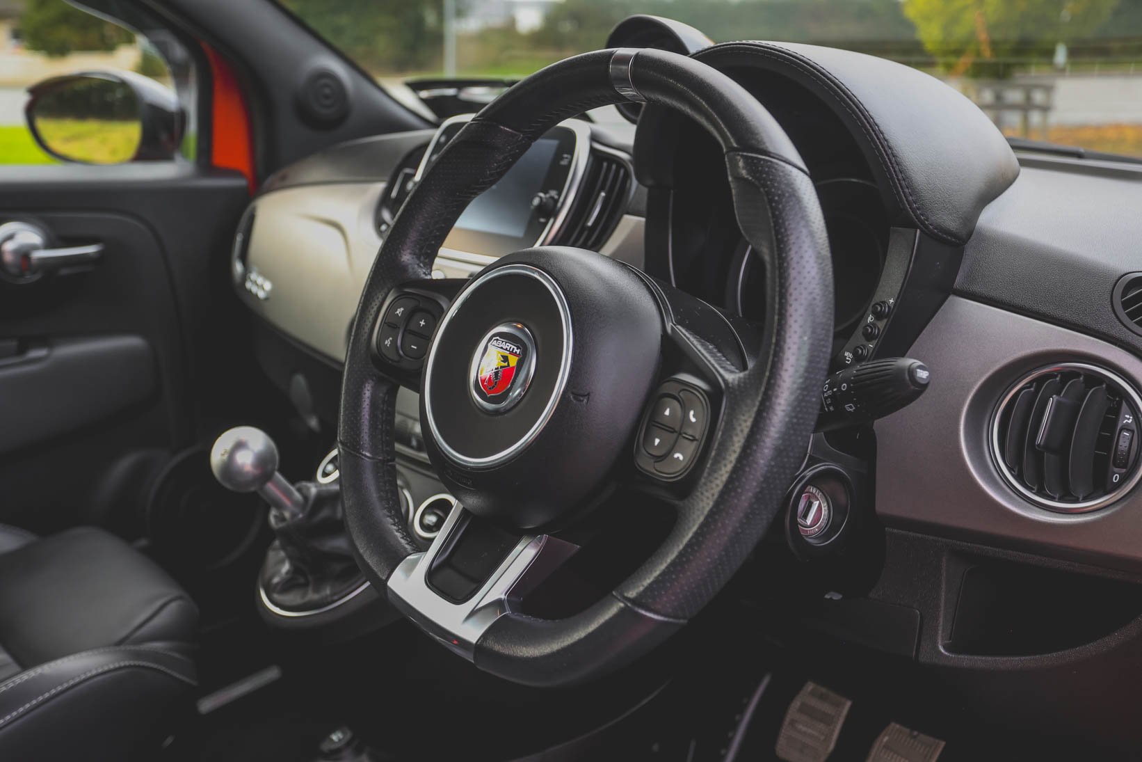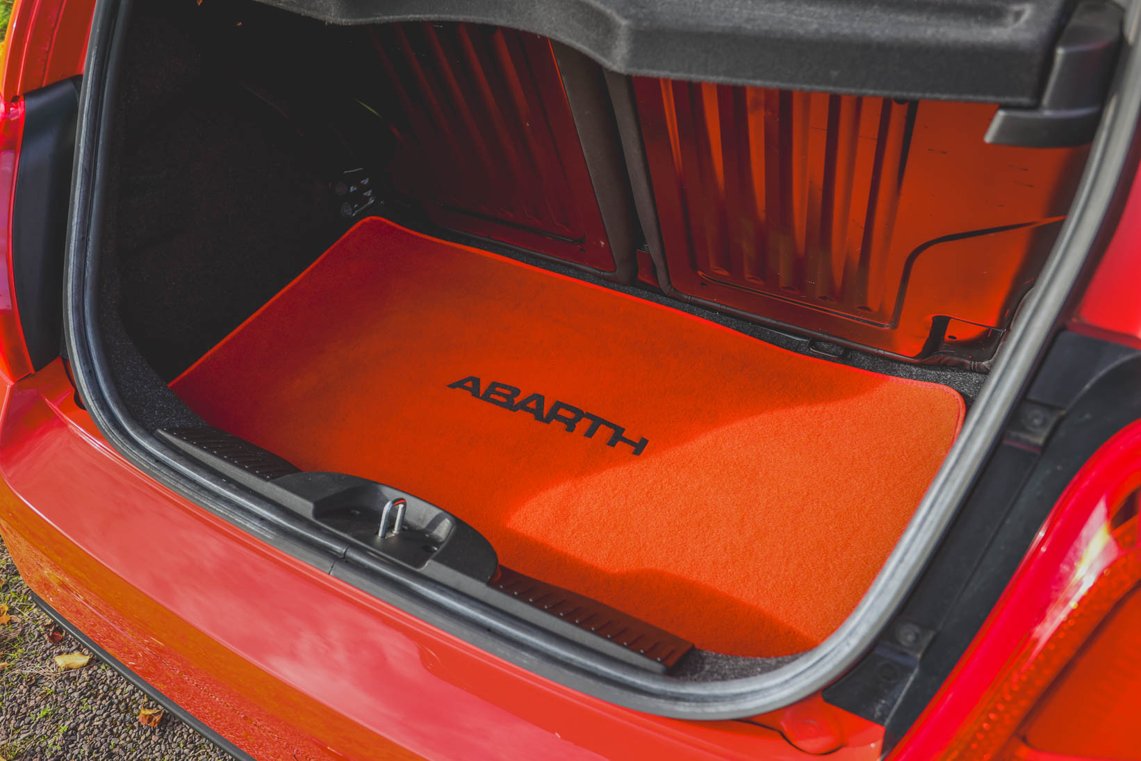 The Abarth branded black leather seats with white piping, alloy pedals and Turbo boost gauge add to the drama, too.