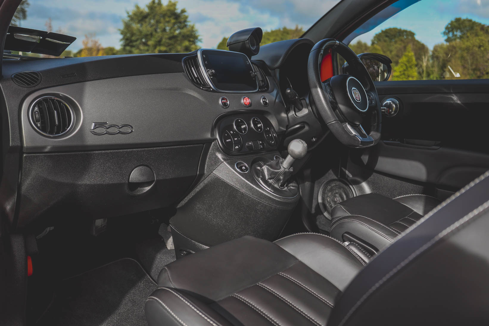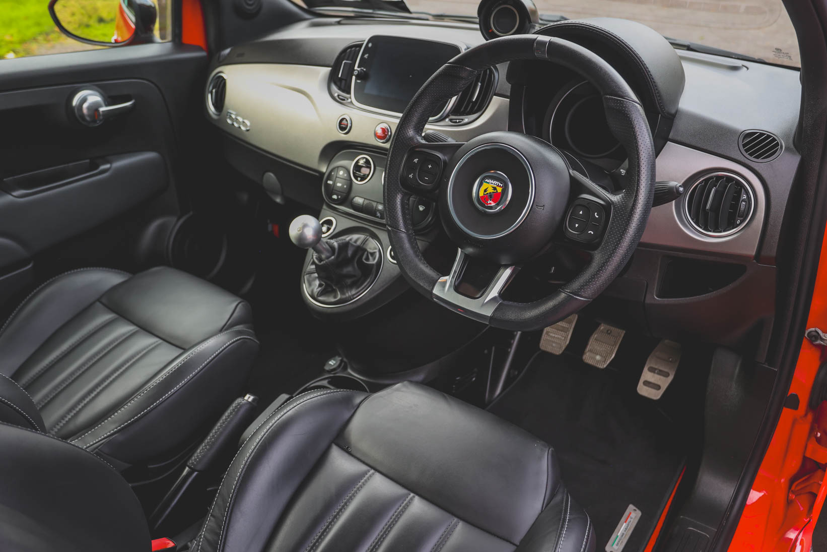 The gleaming Abarth Red bodywork, pristine silver/grey alloys and smattering of Abarth badging all scream fun, and the car is presented in excellent condition in all departments.