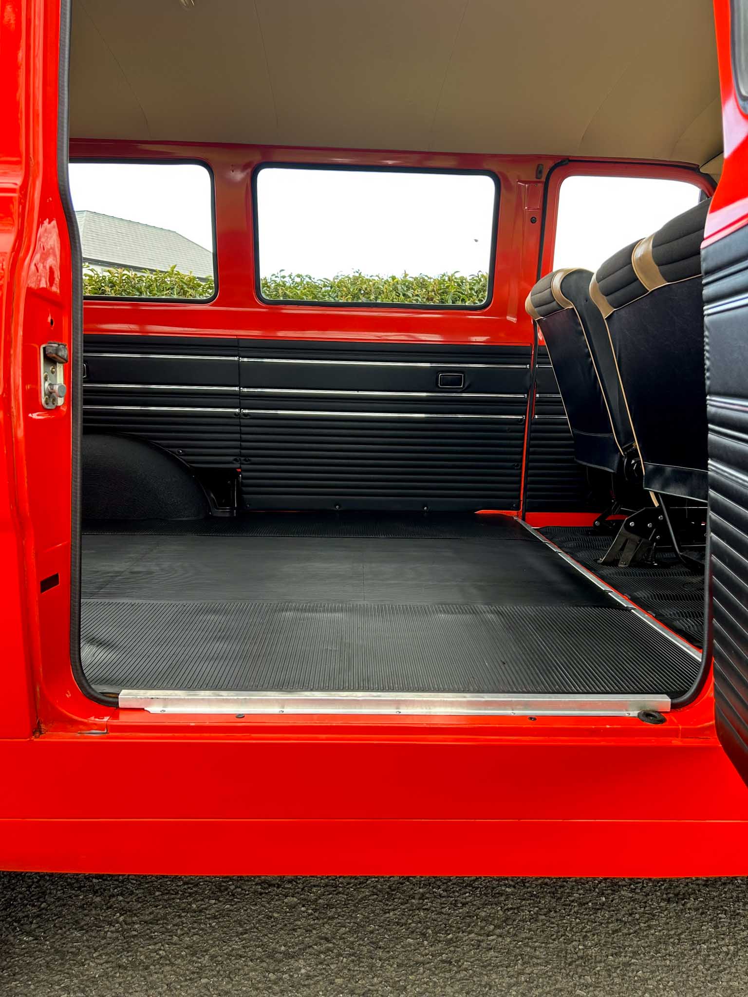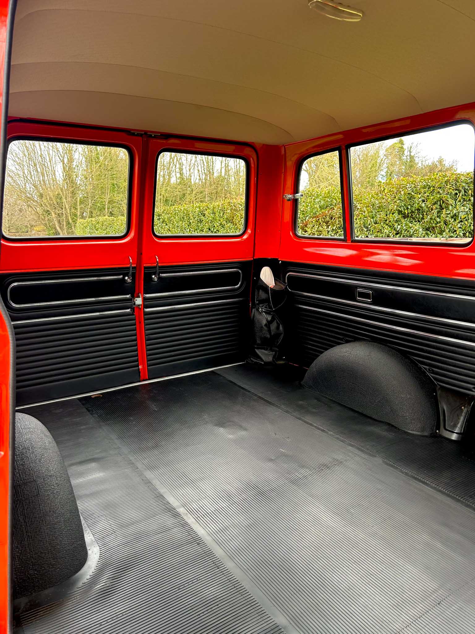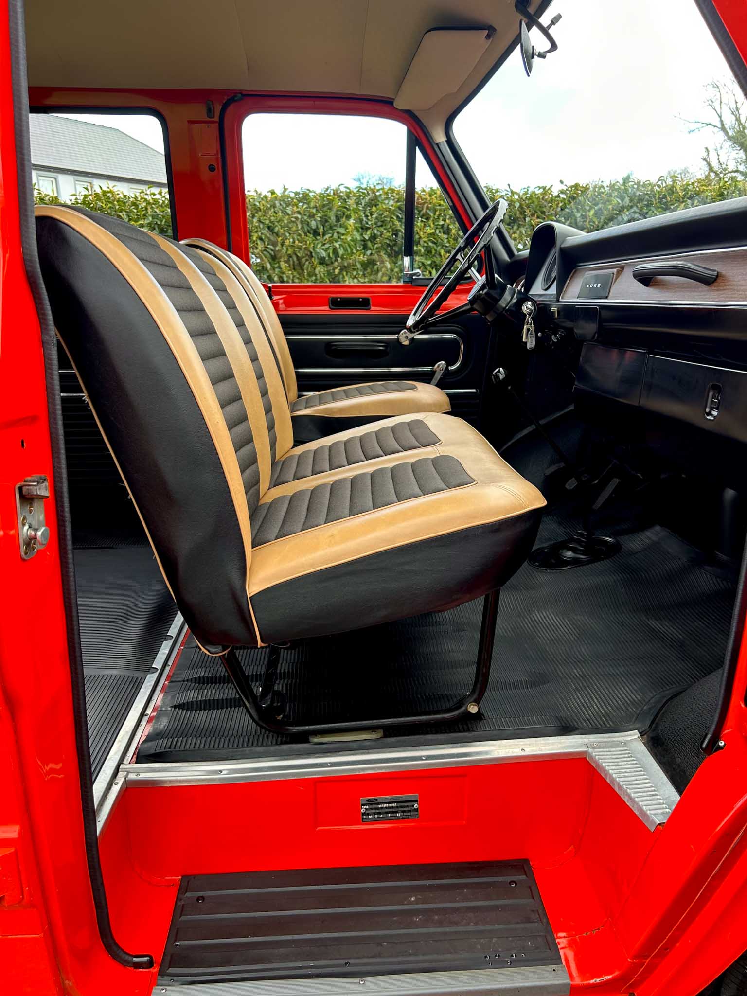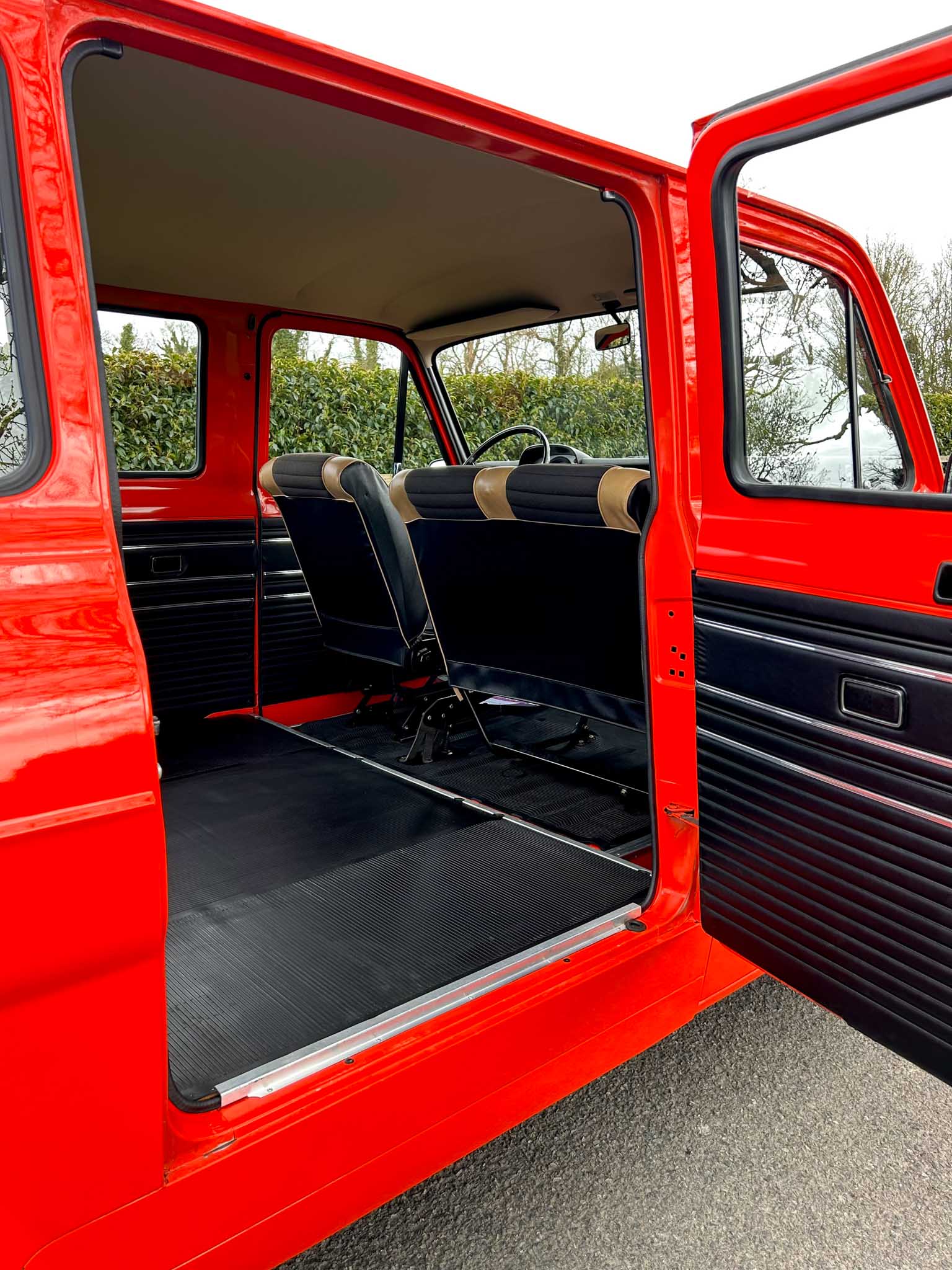 The interior is exceptional. The front two-tone seats are exceptional. The rubber flooring is exceptional. Everything about it is exceptional. Even the smell — that unmistakable period Ford aroma — is still there. All glass is unmarked and retains the original Ford etching. Window rubbers feel like new. It’s honestly hard to comprehend how well preserved this van is. This is a one-owner-from-new example with 95% original paint and only 24,400km on the clock (roughly 15,000 miles). That kind of originality simply doesn’t exist anymore. Certainly not in this condition.