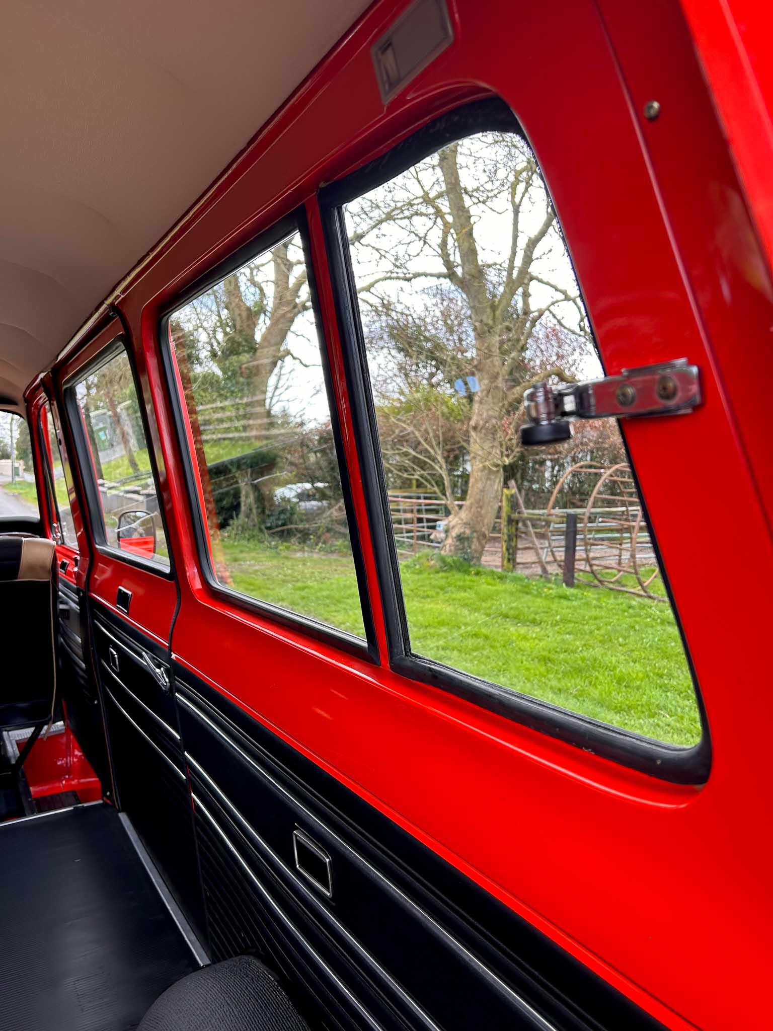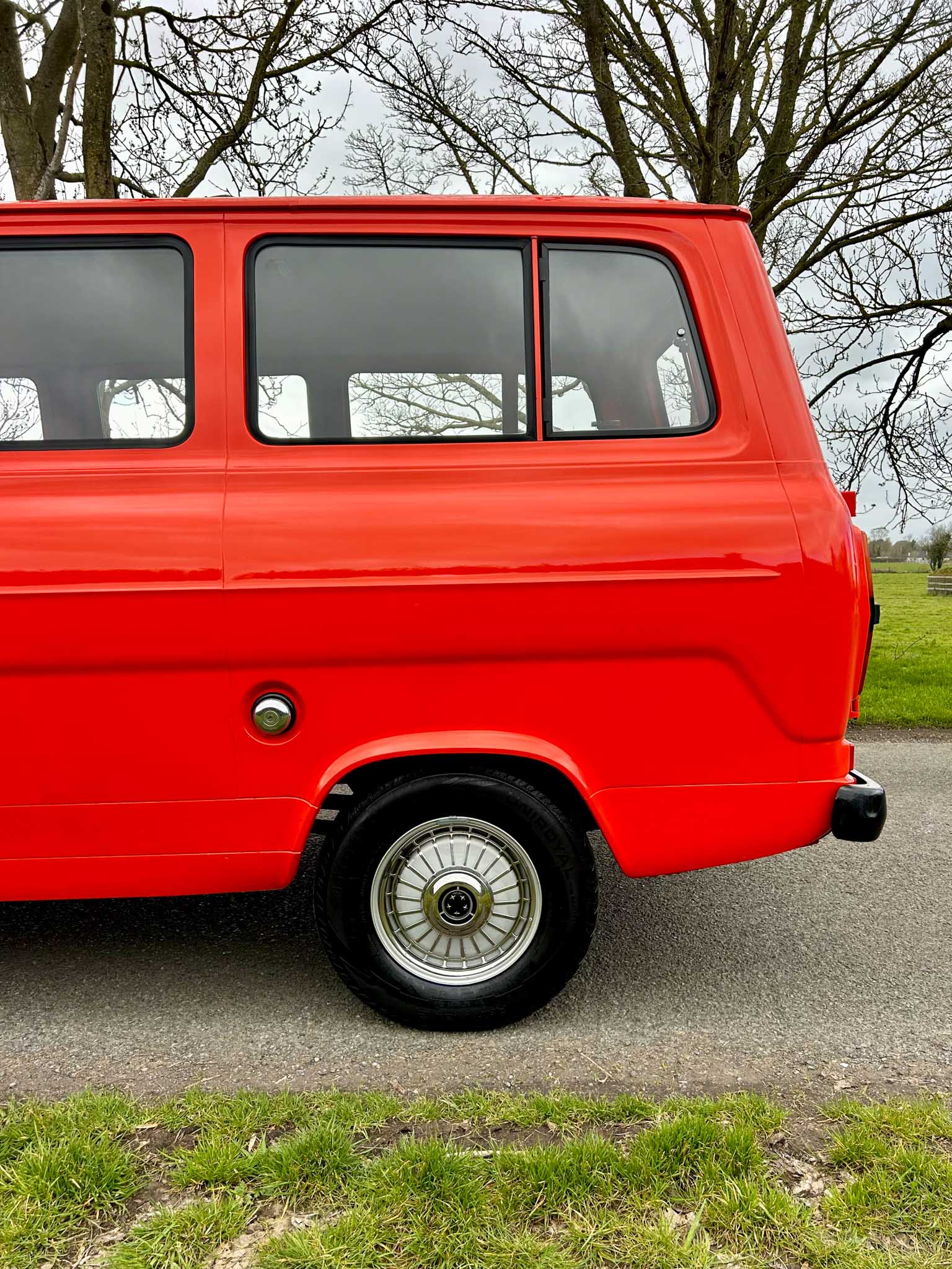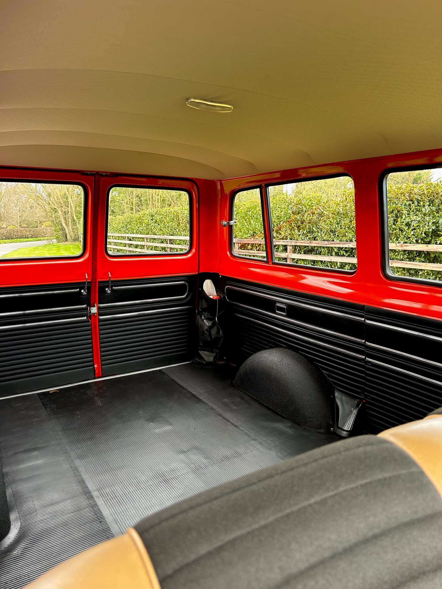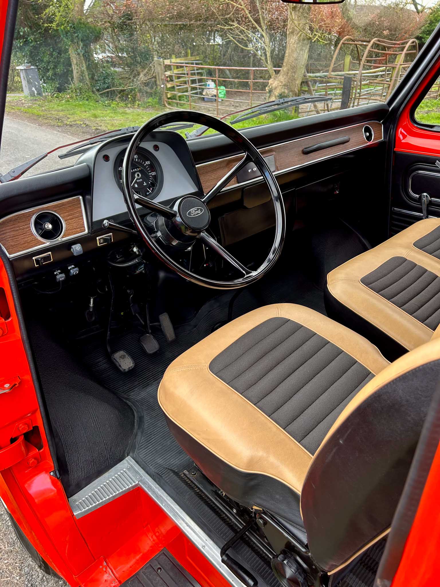 The interior is exceptional. The front two-tone seats are exceptional. The rubber flooring is exceptional. Everything about it is exceptional. Even the smell — that unmistakable period Ford aroma — is still there. All glass is unmarked and retains the original Ford etching. Window rubbers feel like new. It’s honestly hard to comprehend how well preserved this van is. This is a one-owner-from-new example with 95% original paint and only 24,400km on the clock (roughly 15,000 miles). That kind of originality simply doesn’t exist anymore. Certainly not in this condition.