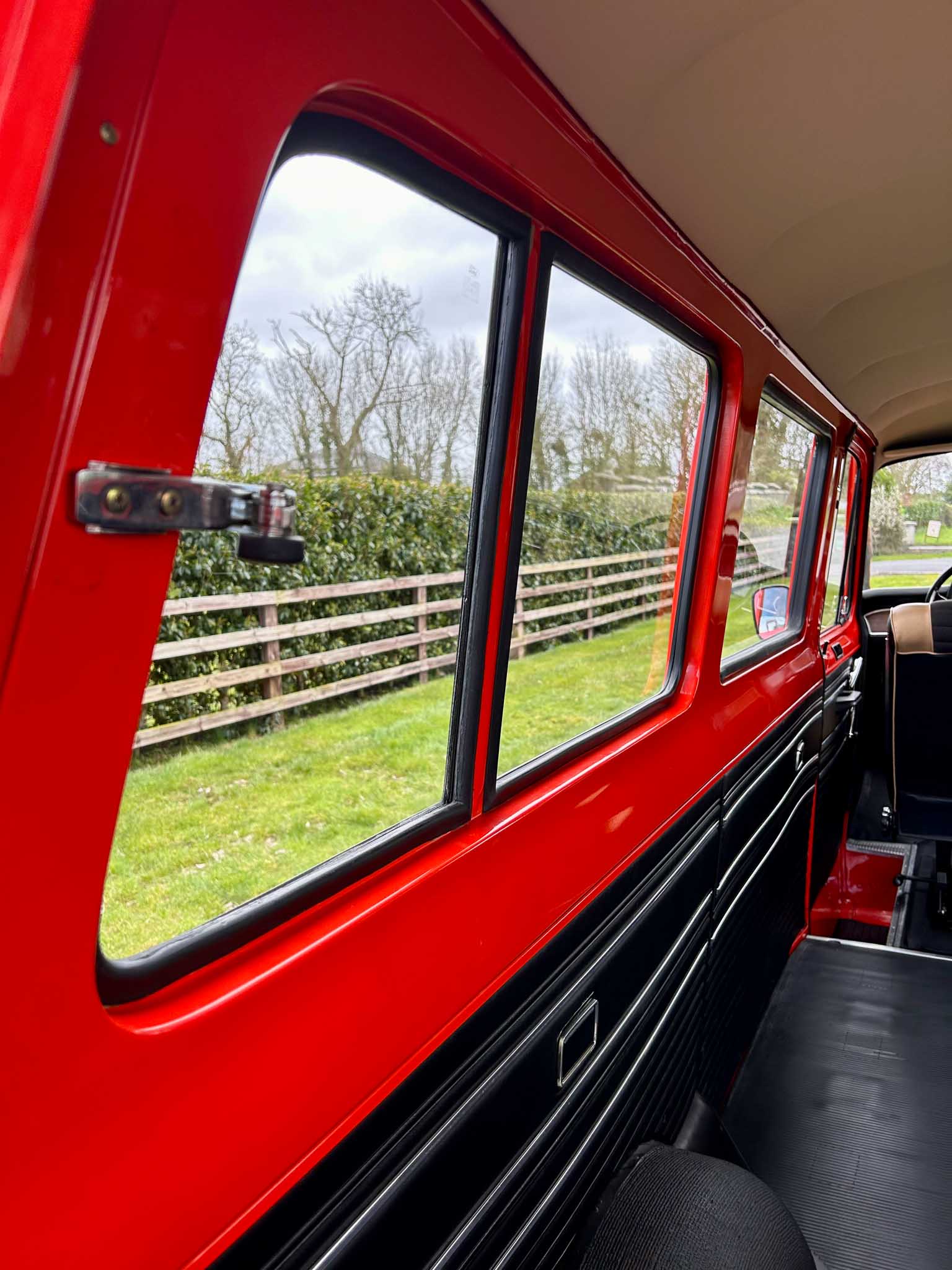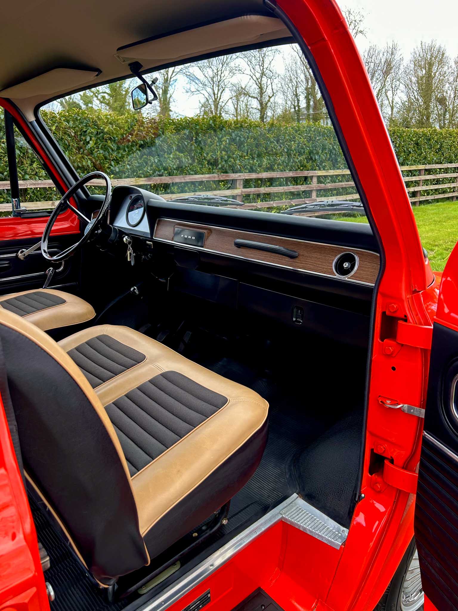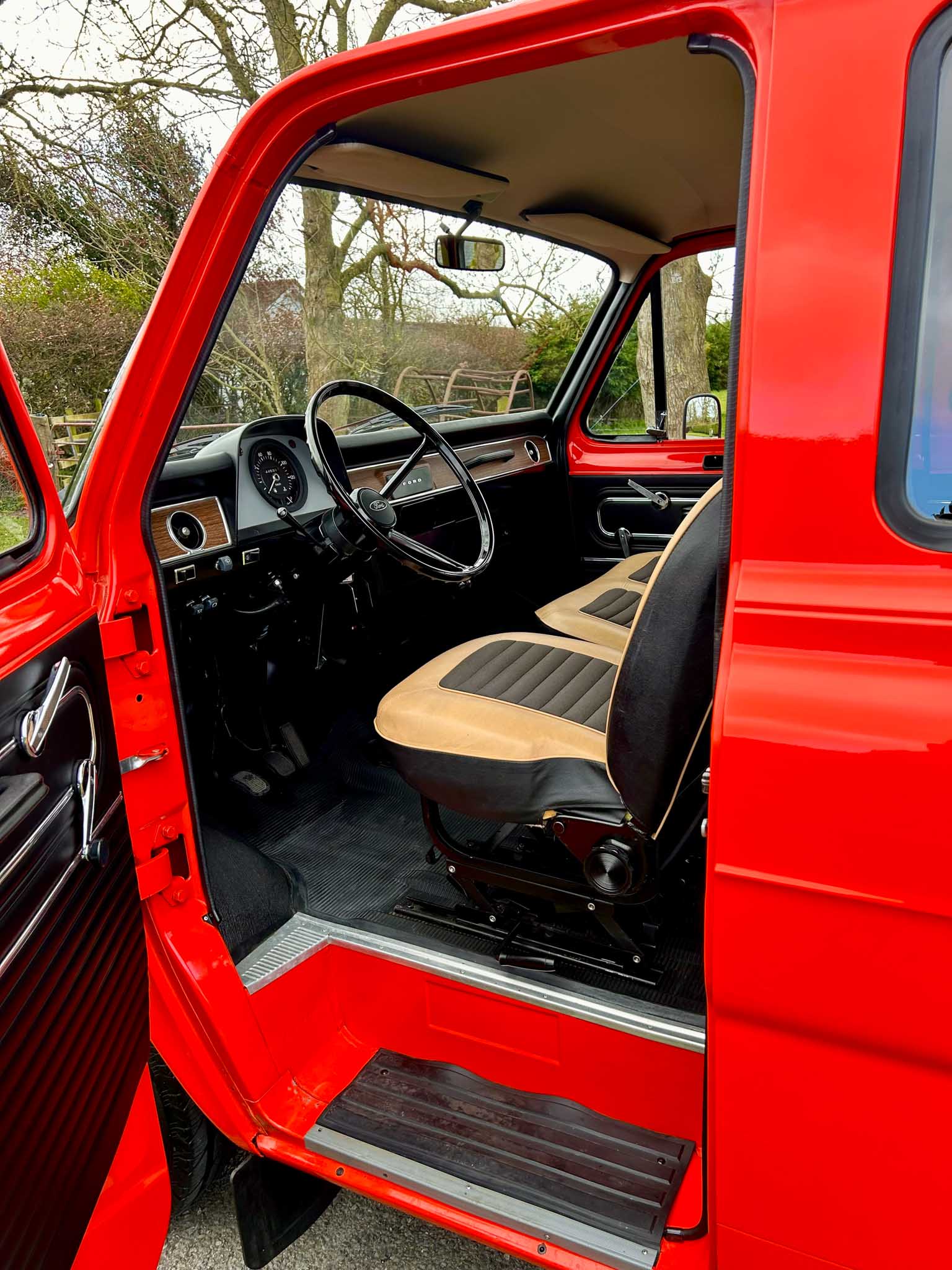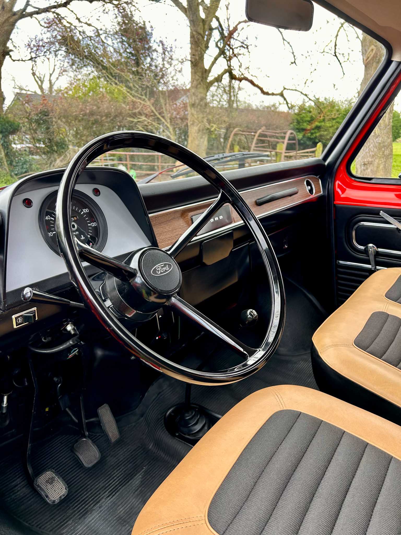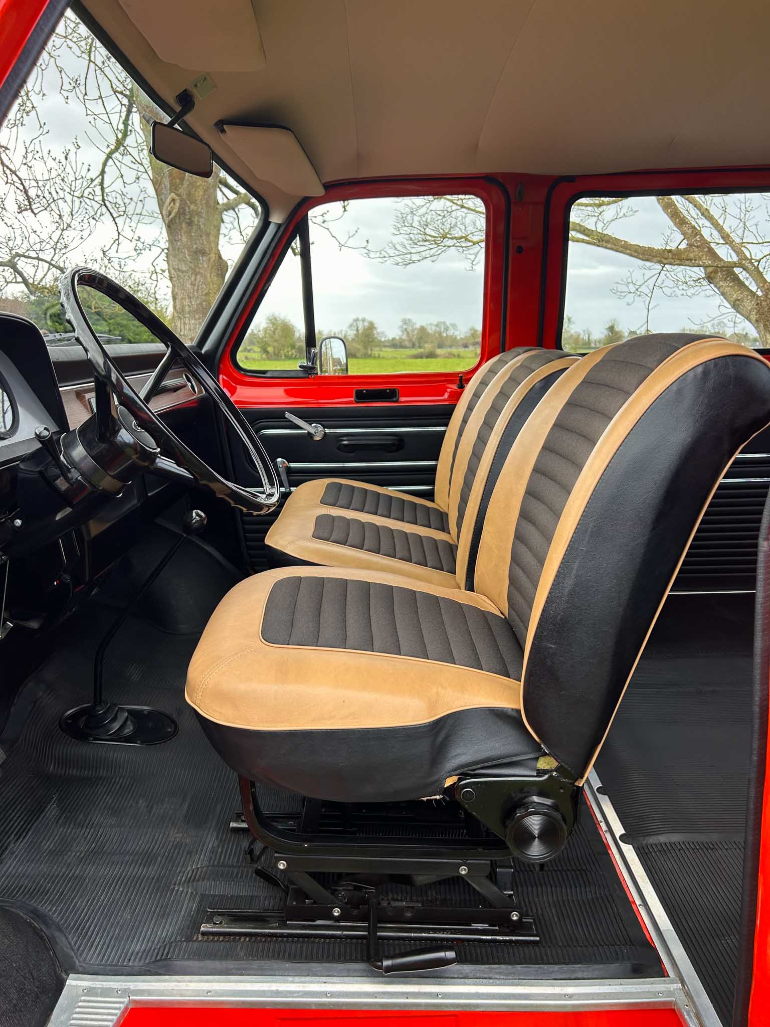 I don’t say this lightly – this is the most impressive period van I have ever seen or driven. The sort of thing that makes modern “restorations” look like they were done with a yard brush and a tin of gloss. Powered by the 1.7 litre V4 engine, it starts instantly, settles into an idle that is sewing-machine quiet and pulls beautifully through the 4-speed gearbox. Period road tests praised these early Transits for their “car-like driving manners” and “unexpectedly lively performance” — this example reminds you exactly why. It’s torquey, smooth, and astonishingly tight. Steering has little to no play whatsoever. It genuinely feels brand new. No exaggeration. None.
