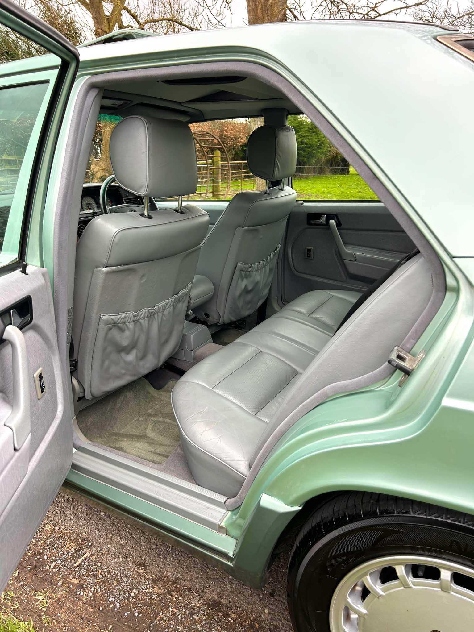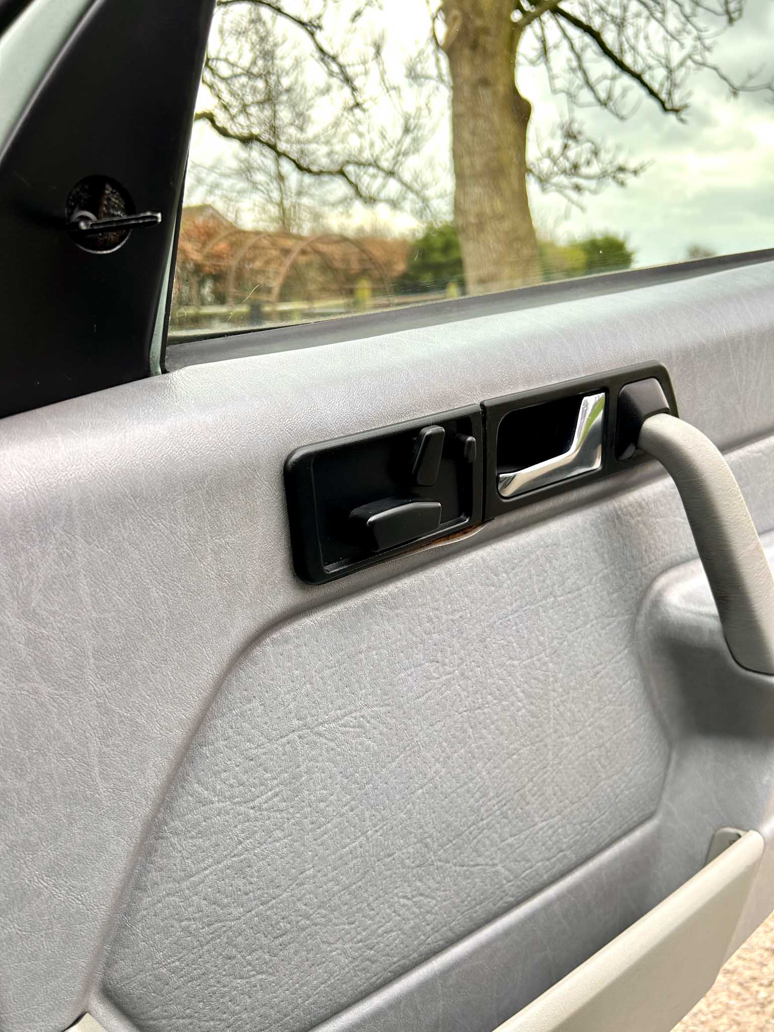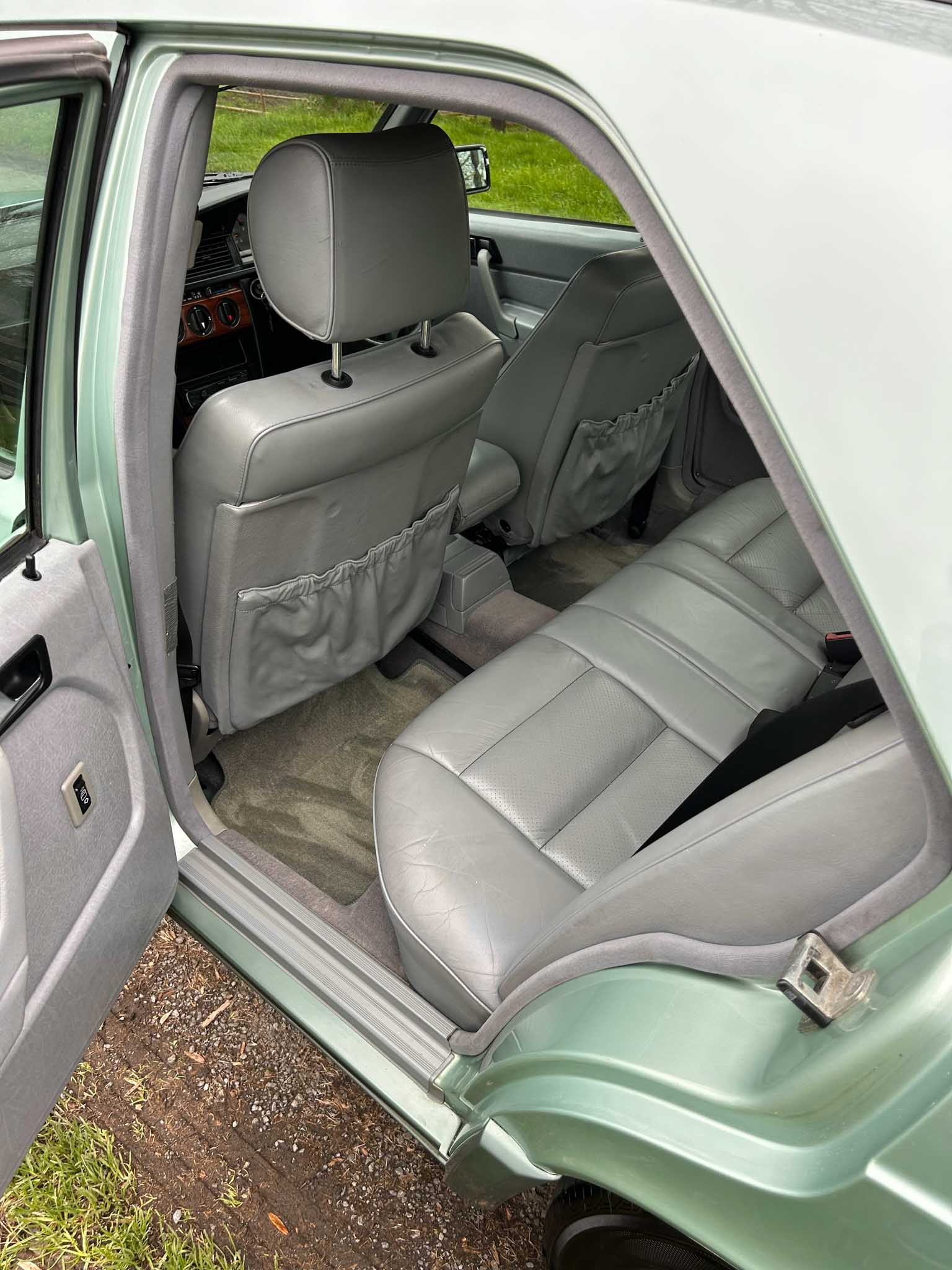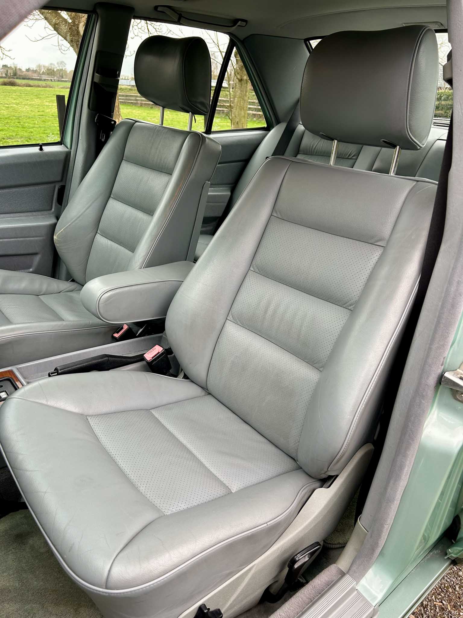 Inside is where this car really sets itself apart. It’s a very high-spec car with full leather, factory sunroof, factory air conditioning, four electric windows and an electric driver’s seat. It even retains its original overmats, which is always nice to see. The upgraded alloy wheels sit nicely on the car and complete the look without taking away from its originality.