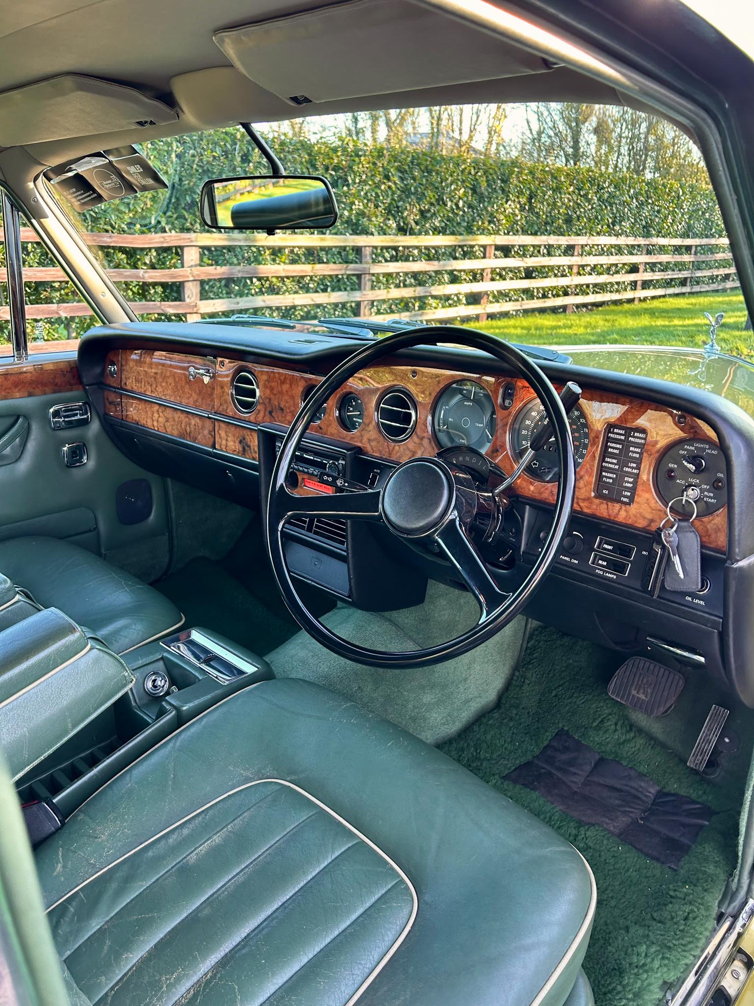 This stand-out 1978 example in the extremely rare colour combination of Onyx Gold with Highland Green ‘top hat’ was ordered from new from the Rolls Royce factory and is believed to be the only of its kind in the world.